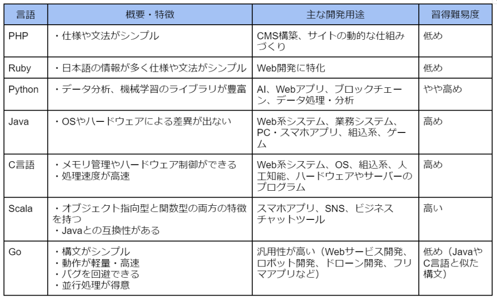 代表的なサーバーサイド言語には以下のものがあります。