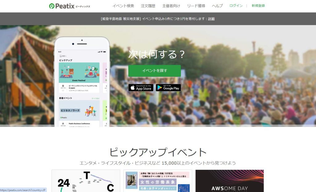 Peatix(ピーティックス)は、米国に本社を置くPeatix Inc.(Peatix Japan株式会社)が運営するグローバルなイベント告知プラットフォームです。アメリカ、シンガポールをはじめとする世界27ヵ国で利用されています。