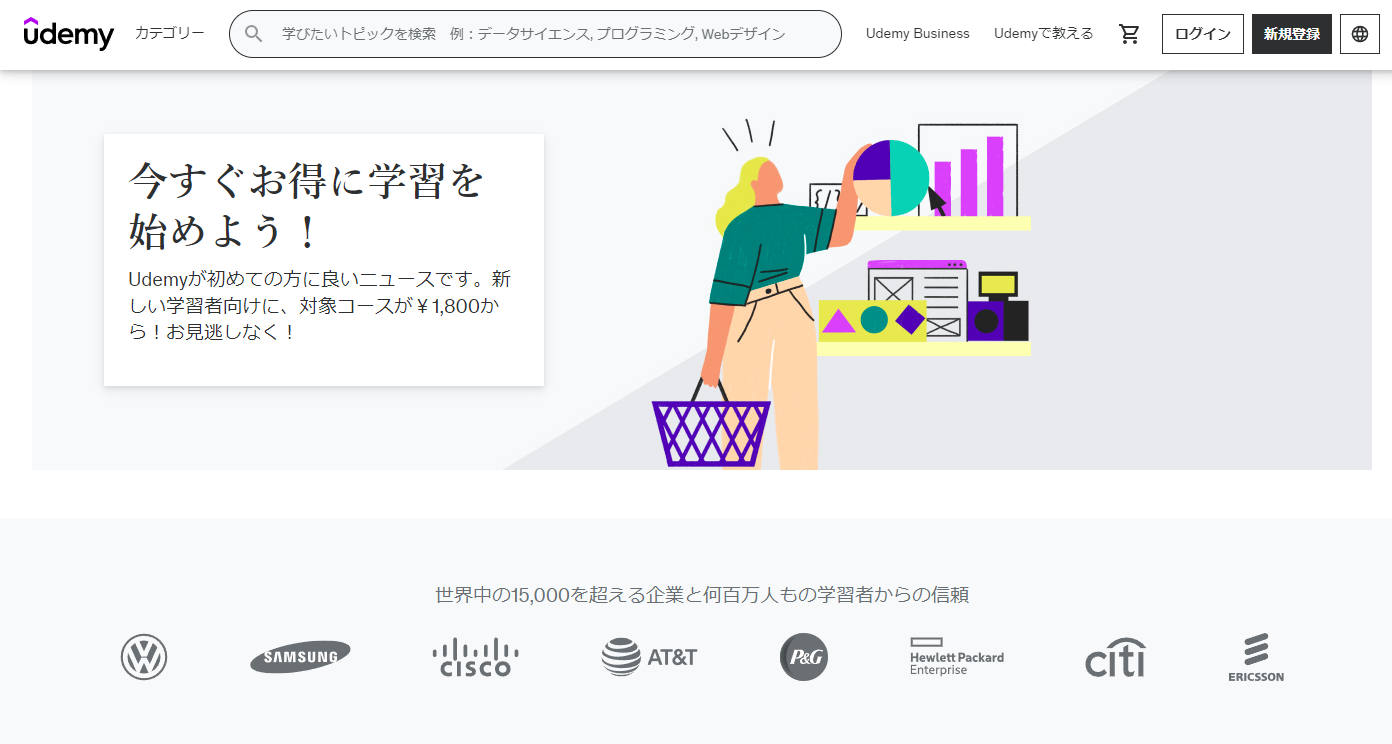 「Udemy」はITやビジネス、プログラミングスキルまでのあらゆる領域を、オンラインで学習できる米国発の学習プラットフォームです。